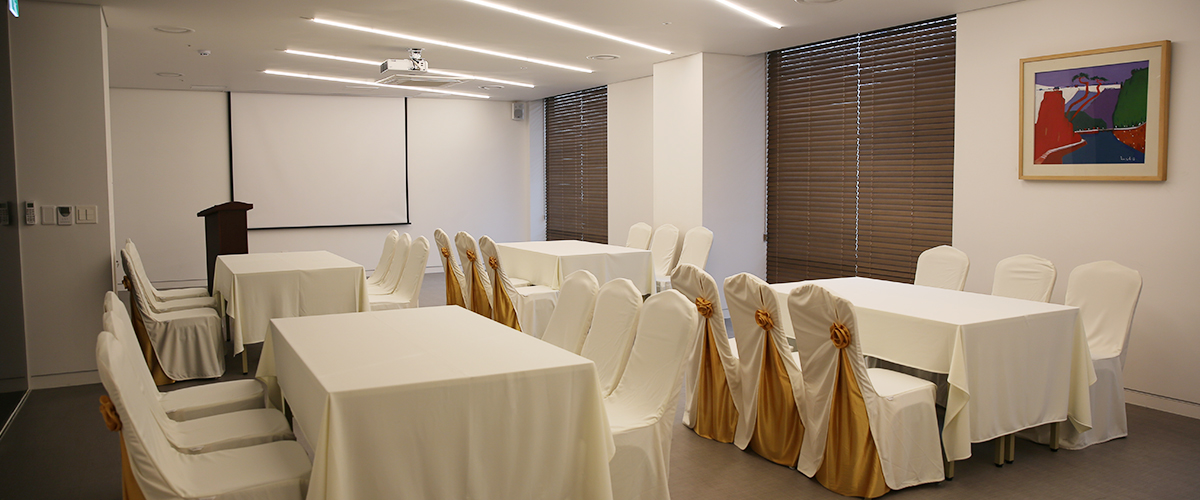 근현대적인 인테리어를 갖춘 회의실에서는 다양한 세미나 및 회의를 진행할 수 있고 자유로운 테이블 배치가 가능합니다. 공간에 최적화된 음향 및 영상시설을 갖추어 편리하고 쾌적한 회의 및 세미나 공간을 제공합니다.